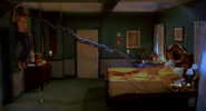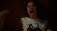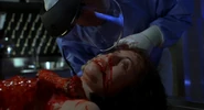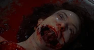 Later, her body is seen in a morgue undergoing an autopsy, where her mouth is forced open by a tentacle creature, which is then killed by the Medical Examiner with a surgical saw.