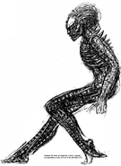 Both genders of the Species have skeletal bodies with proportionally smaller heads to their bodies, mouths having two hair-like mandibles and tentacle-like hair. Both genders have the ability to shape shift between human and alien forms (although both always do so when they are naked) and also exhibit a limited ability to morph their alien forms for the purpose of adaptation to given situations. Females usually have breast tentacles, and are able to manipulate their "hair", and can use retractable spikes on their backs in combat. Males are able to expose a long tentacle for the purpose of killing, or impregnation. However, it is unknown whether the Species is patriarchal or matriarchal within its own social circles as a population of sufficient size has never been observed in the movies.